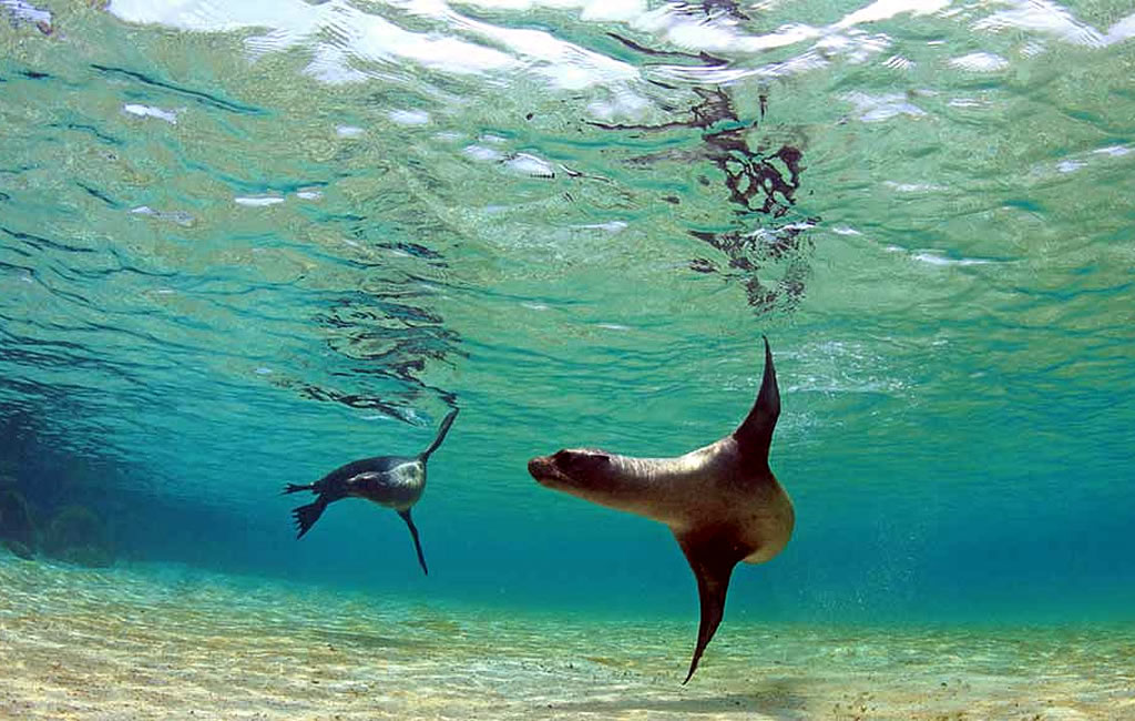 - Santa Fe es hogar de lobos marinos, tortugas marinas, peces tropicales, rayas y otras especies endémicas.